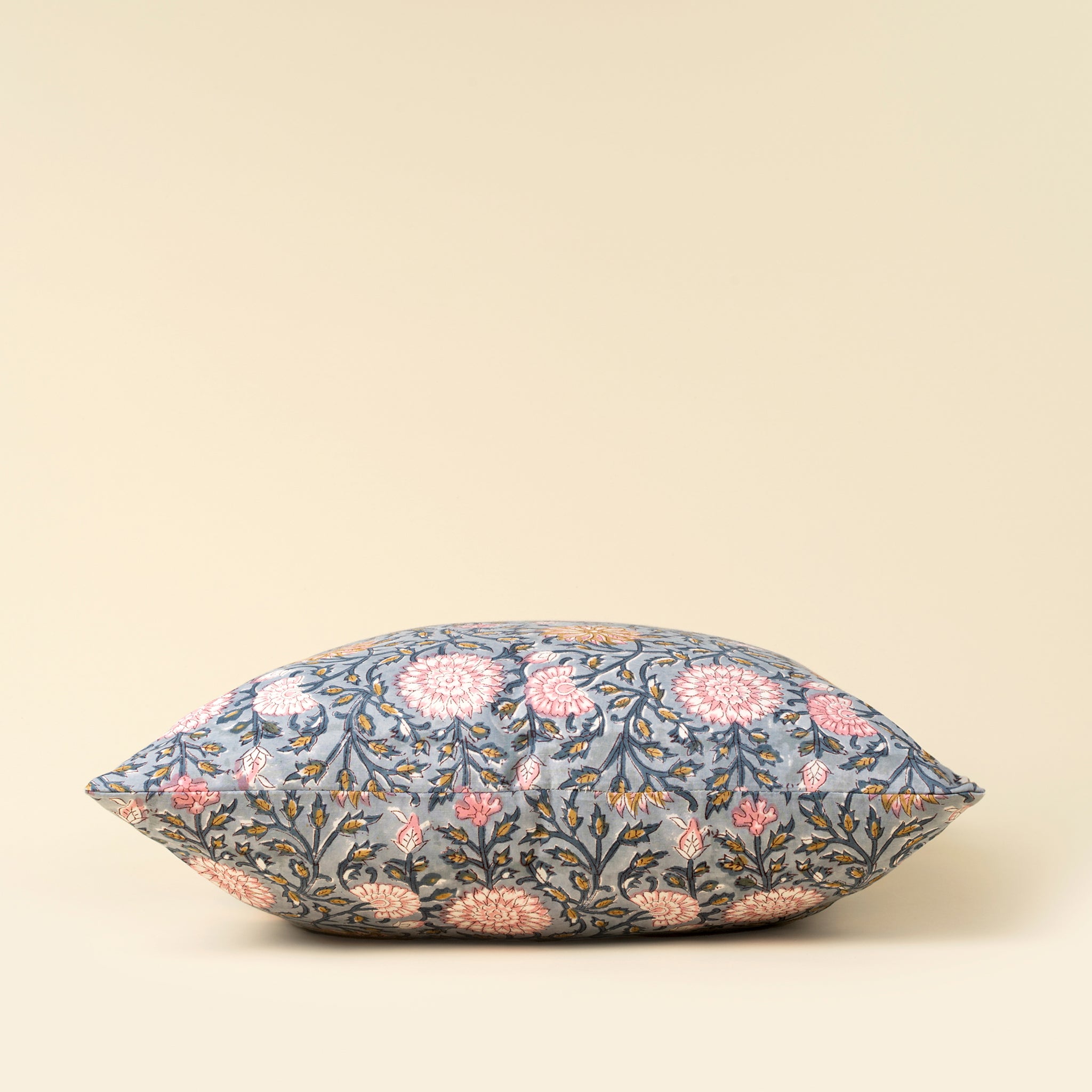 Pair with muted solids or other block print pillows for a layered, eclectic look.