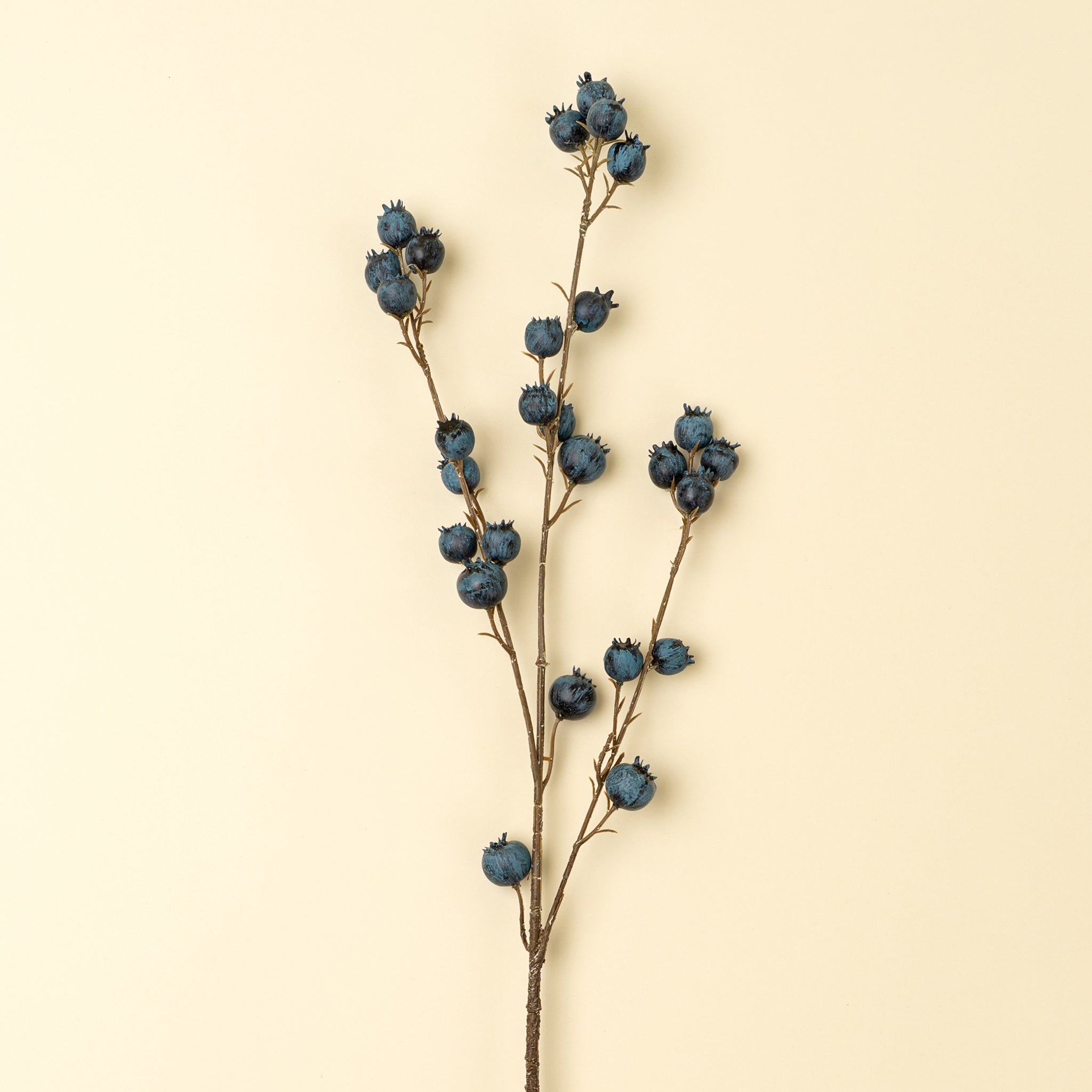 Vibrant and full of character, the Blueberry Branch brings a foraged feel to your faux florals. With clusters of deep blue berries on natural-looking stems, this playful accent looks like it was just picked from the wild, tempting you to reach out and pluck one.